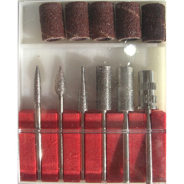 Komplettset für professionelle Nagelbearbeitung. Set enthält: 5 Schleifringe und 6 Fräserköpfe